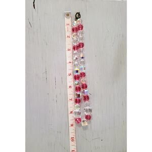 Vintage Geometric Faceted Rose Pink & Clear Glass Bead Necklace w/ Toggle Clasp