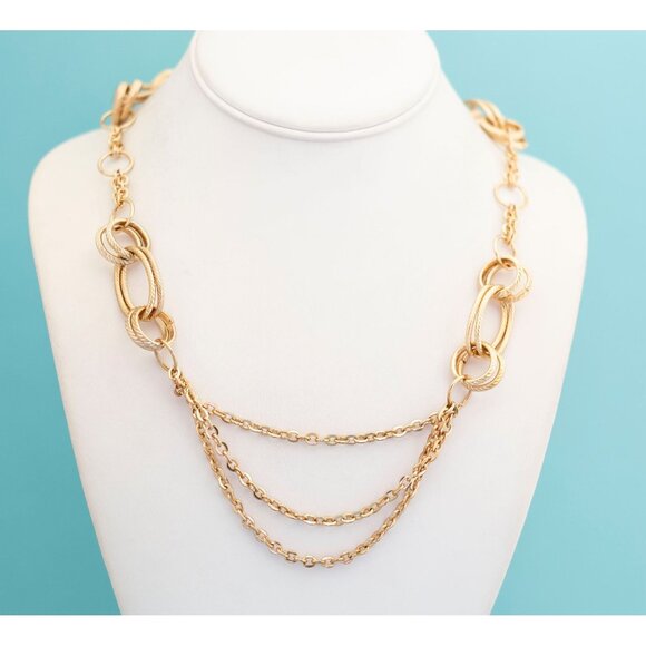 Vintage Geometric Gold Tone Chain and Link Statement Necklace 36 Inch - R27