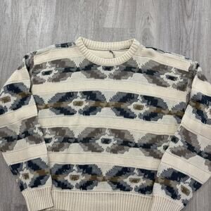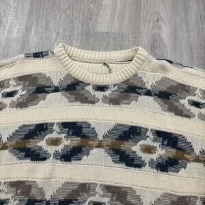 Vintage Geometric Knit Sweater Men's Small Crewneck 90s Cosby Grandpa 3D Biggie