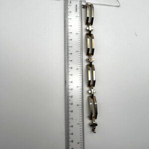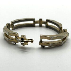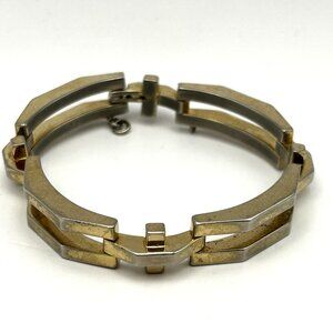 Vintage Geometric Link Bracelet Gold Tone Modernist Retro 7.5in