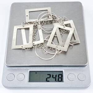 Vintage Geometric Link Sterling Silver Statement Necklace 36”