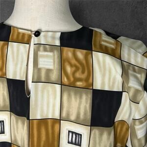 Vintage Geometric Square Print Short Sleeve Shirt Top Notations Size Small, Good Condition