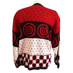 Vintage Geometric Sweater by Alberoy Sz XL Womens Red, White, & Black with Check