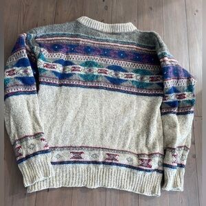 Vintage 80s 90s wool blend sweater in grey with a geometric striped print