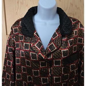 Vintage Geometric Print Satin Pajama Top With Quilted Collar & Pocket