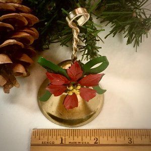 Vintage George Good Brass Bell With Christmas Poinsettia and Bow
