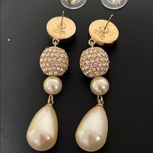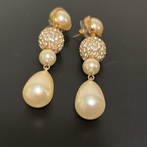 Vintage George Salo Drop Earrings Gold CZ Pearl