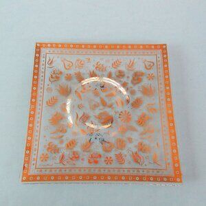 Beautiful and elegant golden platter measures 9 3/4" x 9 3/4" and is in excellent condition. It has a shallow well in the center, may have held a small bowl or dish at one time. This would be perfect for an herbed olive oil dip with crusty bread around it, seafood with sauce or ????