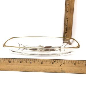 Mid Century Modern Relish Dish with Hand Painted Leaf Design & Gold Rim MCM Designer Georges Briard's Signature Measures 9" x 4"