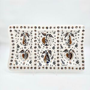 CONDITION: GREAT VINTAGE CONDITION - This Vintage Georges Briard Forbidden Fruit Divided Serving Platter is in great shape for its age. It was made in the 1950s and it is approximately 74 years old. There are no chips or cracks. There are some very slight wear marks on the bottom of the dish. This is a vintage item, so some slight signs of wear are to be expected (PLEASE SEE PHOTOS).