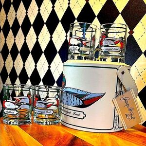 Vintage Georges Briard Ice Cooler with Lid & 4 Glass Set