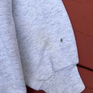 • This is a preloved vintage crewneck sweatshirt in good condition, with a number of light areaas and spots of faint discoloration/yellowing, and a small burn hole on one sleeve. See photos for best detail.