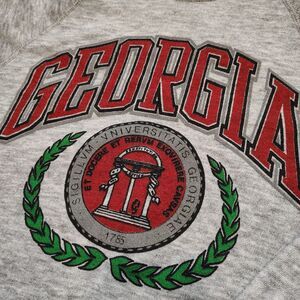 Vintage 90s Georgia Bulldogs crewneck sweatshirt in a lightweight, thinner fabric typical of the era. Gray cotton/poly blend with classic collegiate graphic. Made in USA. Soft, worn-in feel and perfect for retro college style. Unisex fit.