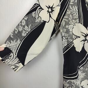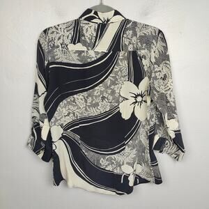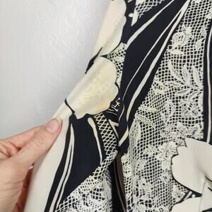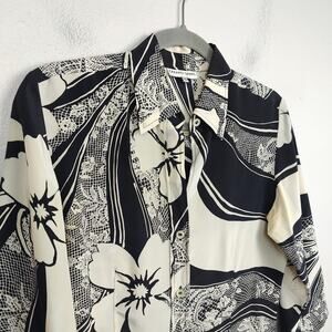 Vintage Gerard Darel Silk Top Womens 38 US 2-4 White Black Floral Button Up Vtg