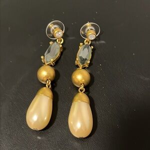 Vintage Gerard Yosca Designer Costume Earrings Stone Pearl Drop NWOT