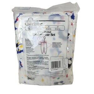 The Vintage Gerber Toddler 2-Piece Thermal Underwear Set in size 4T features a playful penguin theme, making it a fun addition to any toddler's wardrobe. With a retro 80s vibe and animal theme, this underwear set is ideal for a baby shower gift or for adding some flair to your little one's outfit.