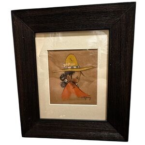 This vintage Gerda Christoffersen lithograph print features a handpainted Native American girl, framed in a 8x10 frame. The artwork captures the essence of Tewa culture with a unique style and theme, making it a beautiful and historically significant piece for art collectors. Made in the United States, this original print showcases the artist's talent and attention to detail, adding a touch of authenticity to any art collection.