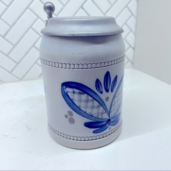 Vintage German Authentic Salt Glaze Handpainted Pottery Stein Mug Cobalt Blue