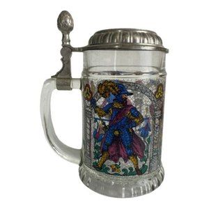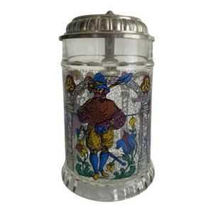 Vintage German BMF Glass Beer Stein Pewter Lid Stained Glass Crackle Pattern