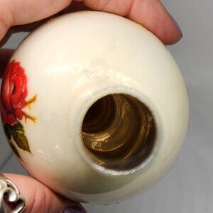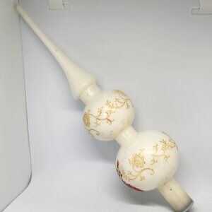 Beautiful blown glass German Tree Topper. Pink and Red Roses on a cream background with gold detail.