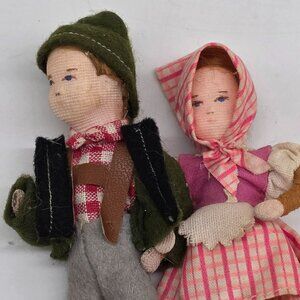 Vintage German Boy & Girl Handmade Dolls Traditional Dress Couple 4.5" Tall