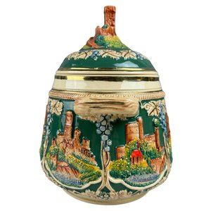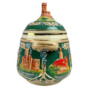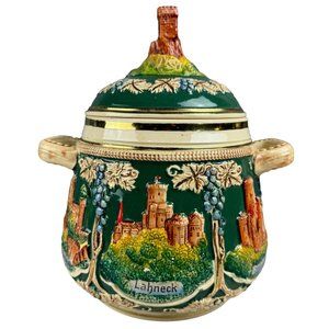 This Vintage German Castle Stoneware Soup Tureen 2L is an elegant and practical addition to your dinnerware. Adorned with a castle design, it comes with a lid to keep your soup warm.