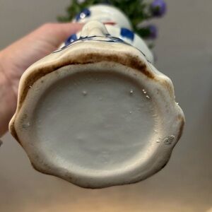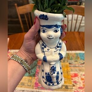 Vintage German Ceramic Vase Blue White Hand painted Mamsell With Rolling Pin