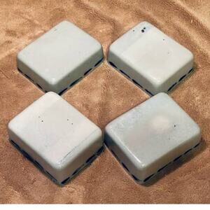 Pre-owned, Vintage German Cobalt Blue Gray Salt Glazed Set of (4) Rectangular Bowls (1920s). This set of bowls is a rare find and have so many uses. Handcrafted bowls measure 4" x 3 1/4" x 1 1/4" deep with rounded edges, cobalt blue design on light gray stoneware, and glossy salt glaze finish. Bowls are in excellent condition for their age, no cracks, breaks or chips. *Please note one of the bowls has a blackened raised area, question from production, area under the glaze* The bowls are handcrafted & handpainted so the edges and and designs are irregular and not exact, making each one made unique and one-of-a-kind. Great set for the collector of vintage stoneware. Recommended hand wash only, Have been on display in a glass case. Comes from a smoke free, pet free home.