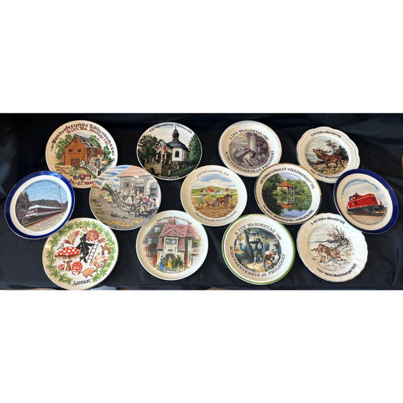 Vintage German Collector Plates Lot 13 Plates 7 1/2" Wandertag Animals Travel