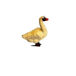 This vintage Composite and metal swan figurine is a charming collectible. The cream and red painted finish adds a touch of rustic elegance to home decor. Handcrafted in Germany C1940's. Nativity or farmhouse piece.