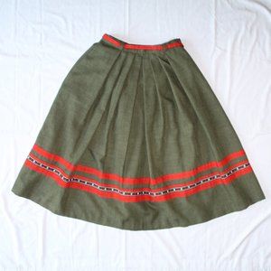 Vintage German Dirndl Green Red Linen Blend Octoberfest Skirt XS/S 25" Waist