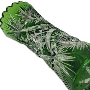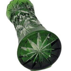 Emerald Green Cut-to-Clear Crystal Tapered Vase | Dual Motif/Pattern | 2.11lb