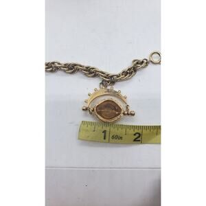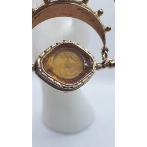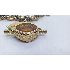 Vintage German Gold Chain Bracelet & Spinning Cameo Amber Glass Intaglio