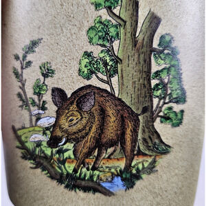 Vintage German Hip Flask Wild Boar Hinged Captive Top Liquor Stoneware Hunting