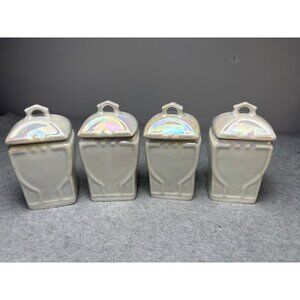 Vintage German Iridescent Porcelain Spice Jar Set 1920s