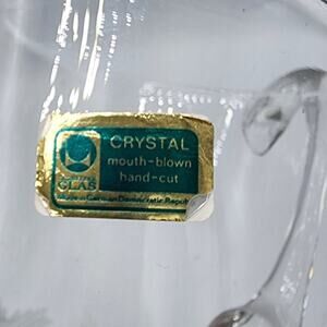 The etched glass features a hand-cut grape and leaf design with a 24% lead oxide content