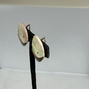 Vintage German Mother of Pearl & Brass Fan Clip-On Earrings