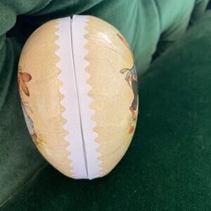 VINTAGE German Nestler Paper Mache Easter Egg 4.5X3" Candy Holder DANCING BUNNIES