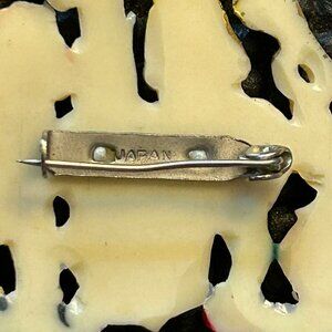Made of plastic, likely celluloid, a common material for brooches and ornaments.