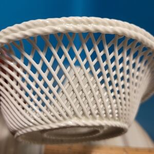 Beautiful Basket Lattice Weave porcelain bowl with twist edging. No damage at all. Please see all photos.
