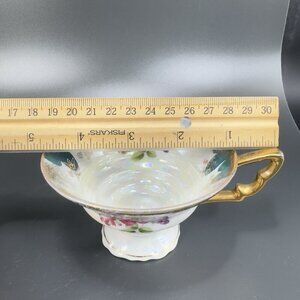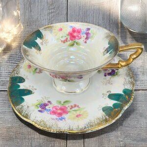 Vintage German Porcelain Teacup And Saucer Set Flower Pattern Gold Accent Decor