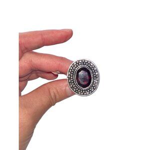 Vintage German Silver Garnet Ring Sz 6 Gothic Style