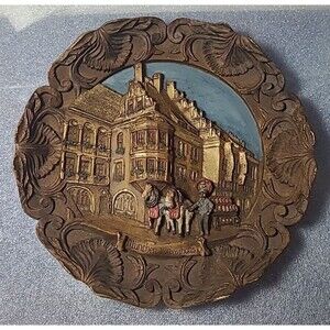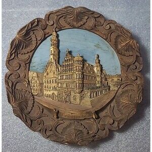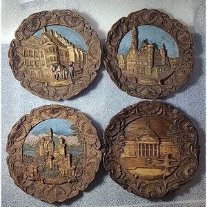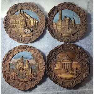 Vintage German Wood/Resin 3D Carved Plates Lot Of 4 German Landmarks