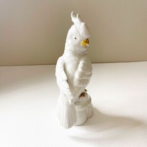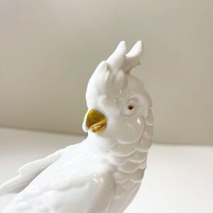 Vintage German Porcelain Cockatoo Thuringia White Ceramic Painted Gold