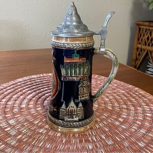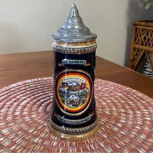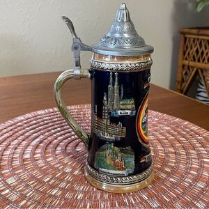 Vintage Germany 1/2 Liter Ceramic Hand Painted Beer Stein With Metal Lid