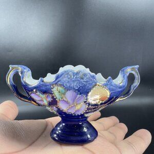 Vintage Germany Fien Porcelain Basket Dish Small Miniature Dish With Handles VTG