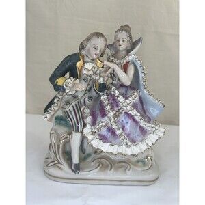 Vintage Germany Figurine Courting Couple Bone Lace China Crossed Swords Mark