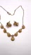 Vintage Germany signed gold tone and AB rhinestone necklace and clip-on earrings set. A sweet and dainty set with a fine gold tone chain leading to a hook closure. Shell shape filigree gold tone focal front accented with sparkly AB rhinestones. All stones are present. Clip-on earrings mimic the necklace's design. Note: one of the earrings does have some gold finish loss, particularly on the back. The front is fine but it is ever so slightly less gold than the other earring. Still quite weary le in my opinion and the difference would not be seen when wearing. The necklace has a drop of about 8 1/2" at its longest with two adjustments about 1" apart. Vintage. Classic. Dainty. Feminine.