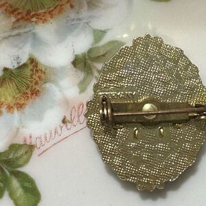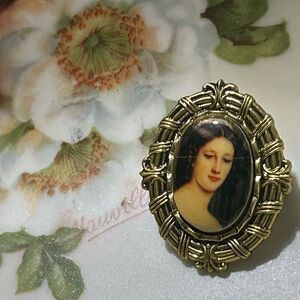 Vintage Germany Signed Porcelain Woman Portrait Cameo Brooch Gold Tone Metal Pin