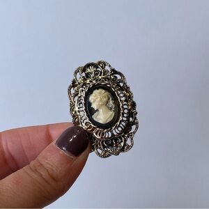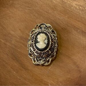 Vintage Gerry's Black & Gold Left Facing Cameo Brooch Pendant
